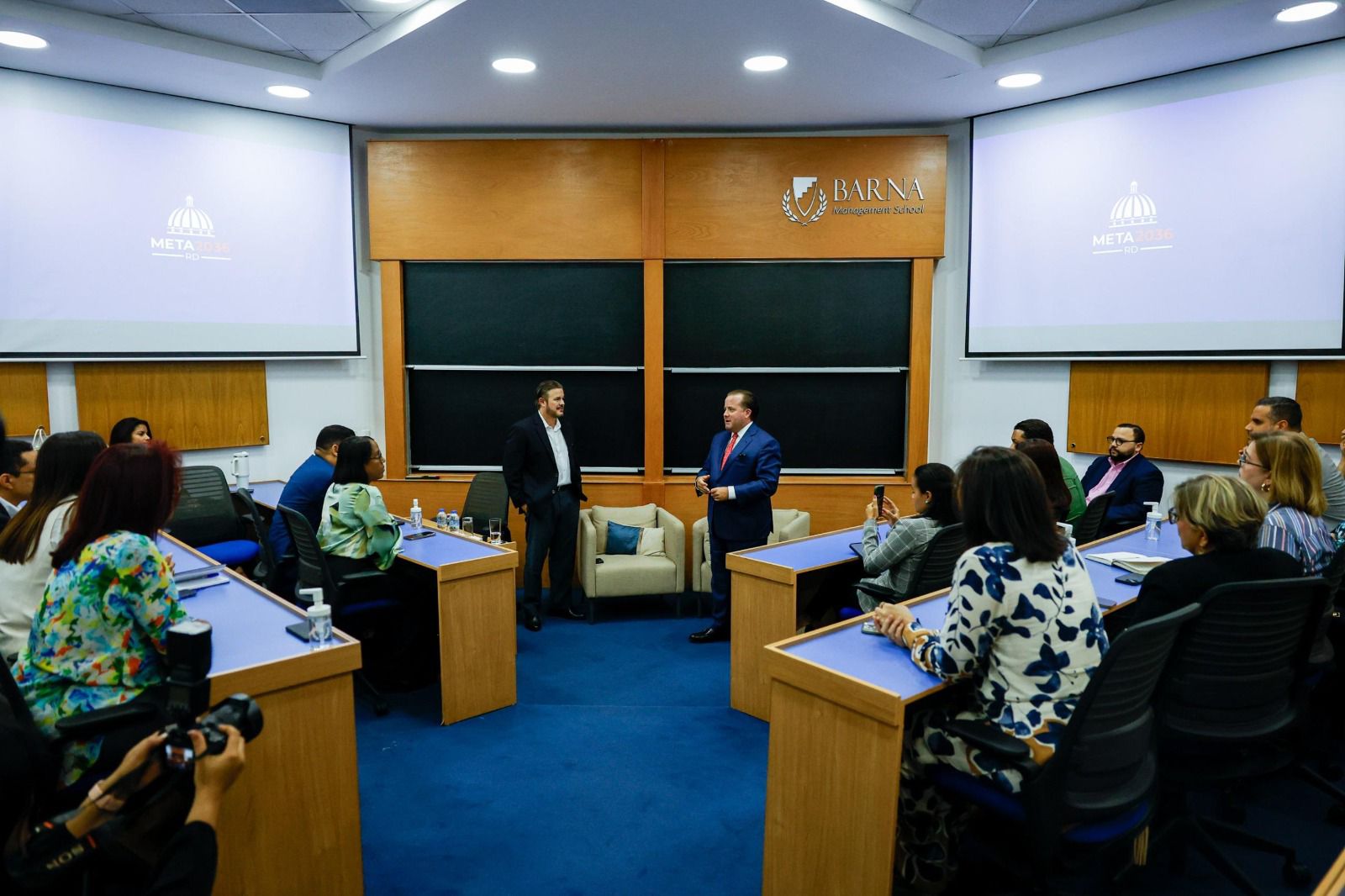 La presentación tuvo lugar en el auditorio de Barna Management School, institución reconocida por su enfoque en la formación de líderes responsables, donde se generó un espacio de diálogo entre autoridades gubernamentales y representantes del sector académico.